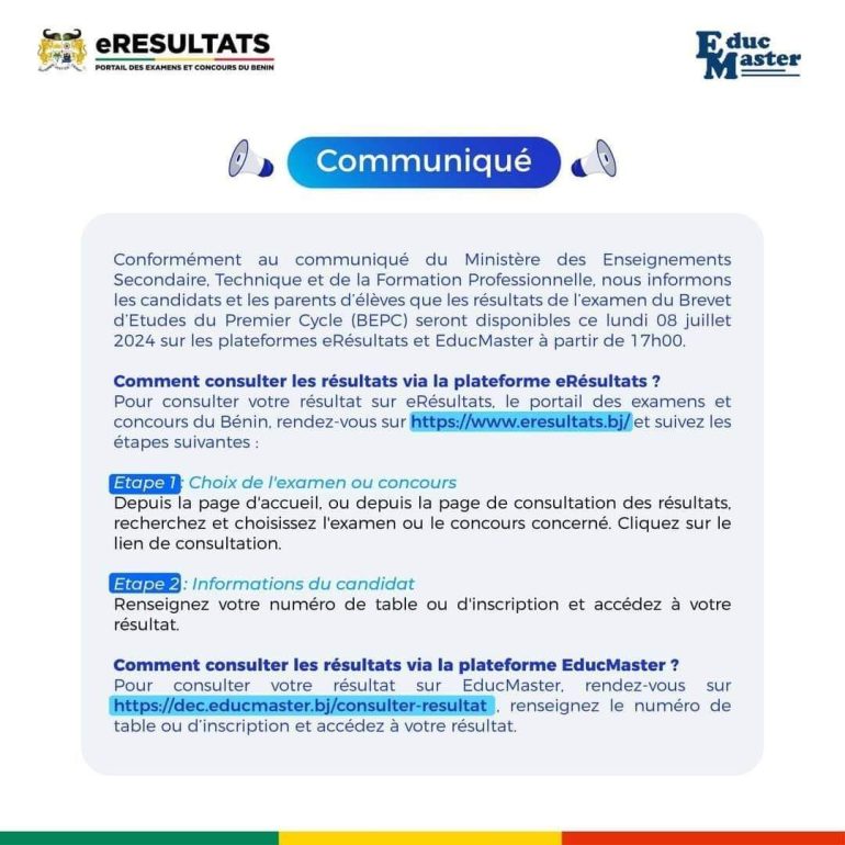 BEPC 2024 : Les résultats désormais disponibles en ligne